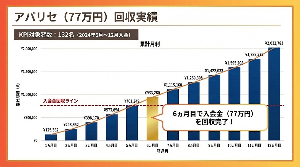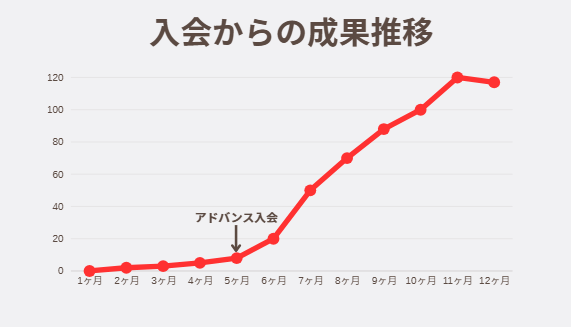 アパリセ入会時にハイレベルプランを同時に受講し、入会後右肩上がりに利益を伸ばしました。